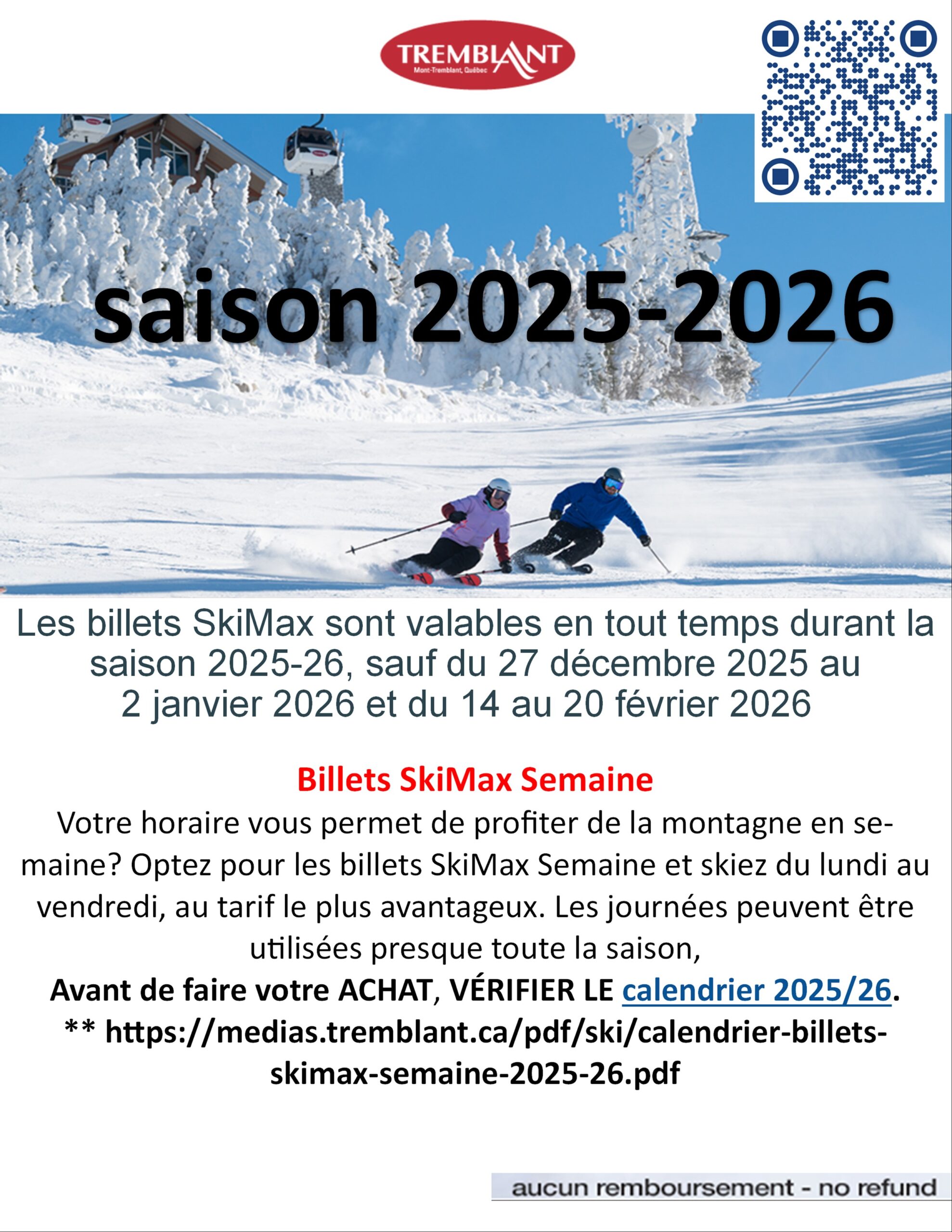 Rabais Activités 47 vues 12 février 2026 Tremblant VENTE TERMINÉE RAPPEL SEULEMENT POUR CEUX QUI ONT DÉJA DES BILLETS